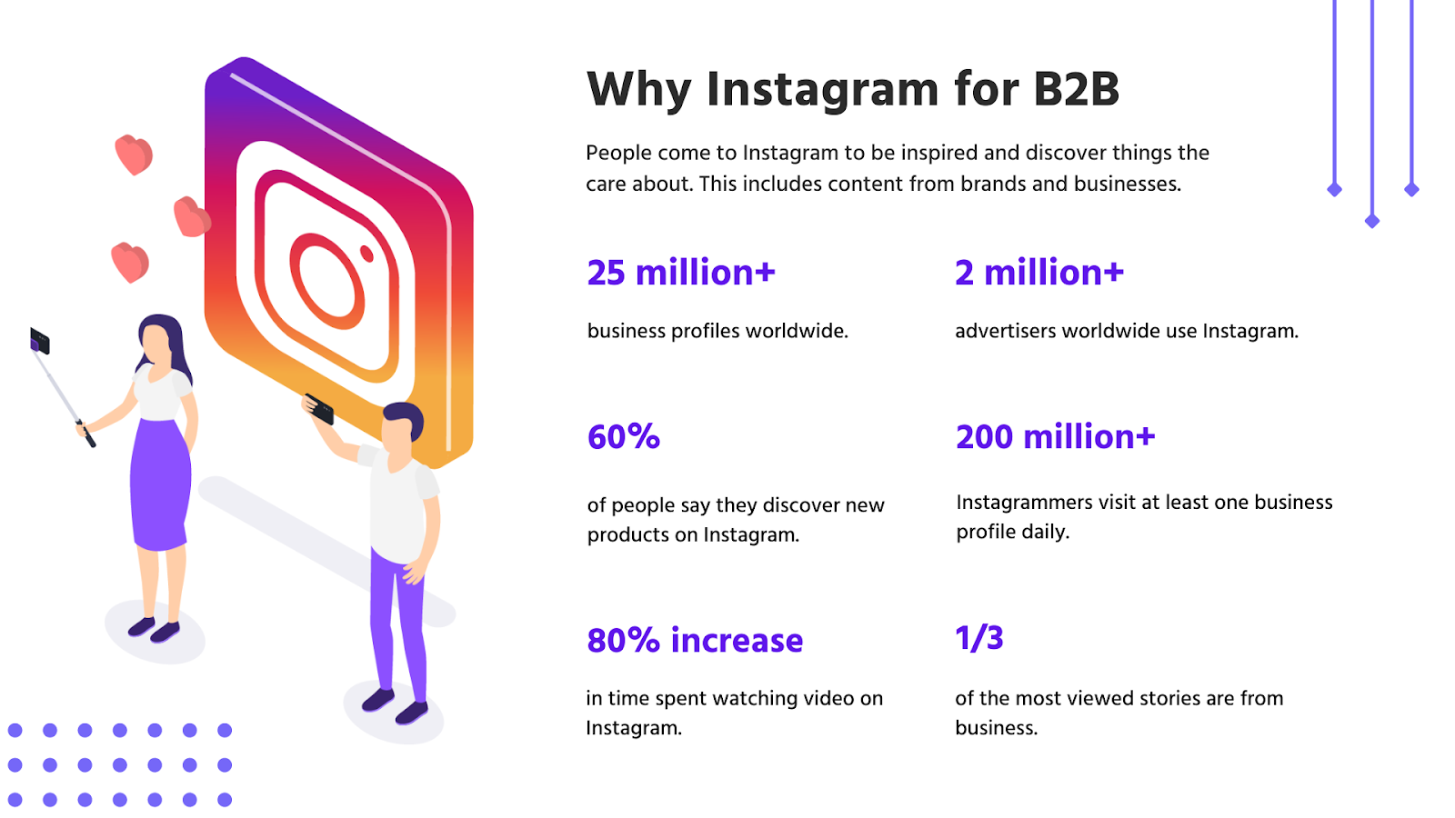 A common misconception is that Instagram is only beneficial for the B2C audience. Not true! In recent years Instagram for B2B has increased in popularity because of its tremendous benefits.